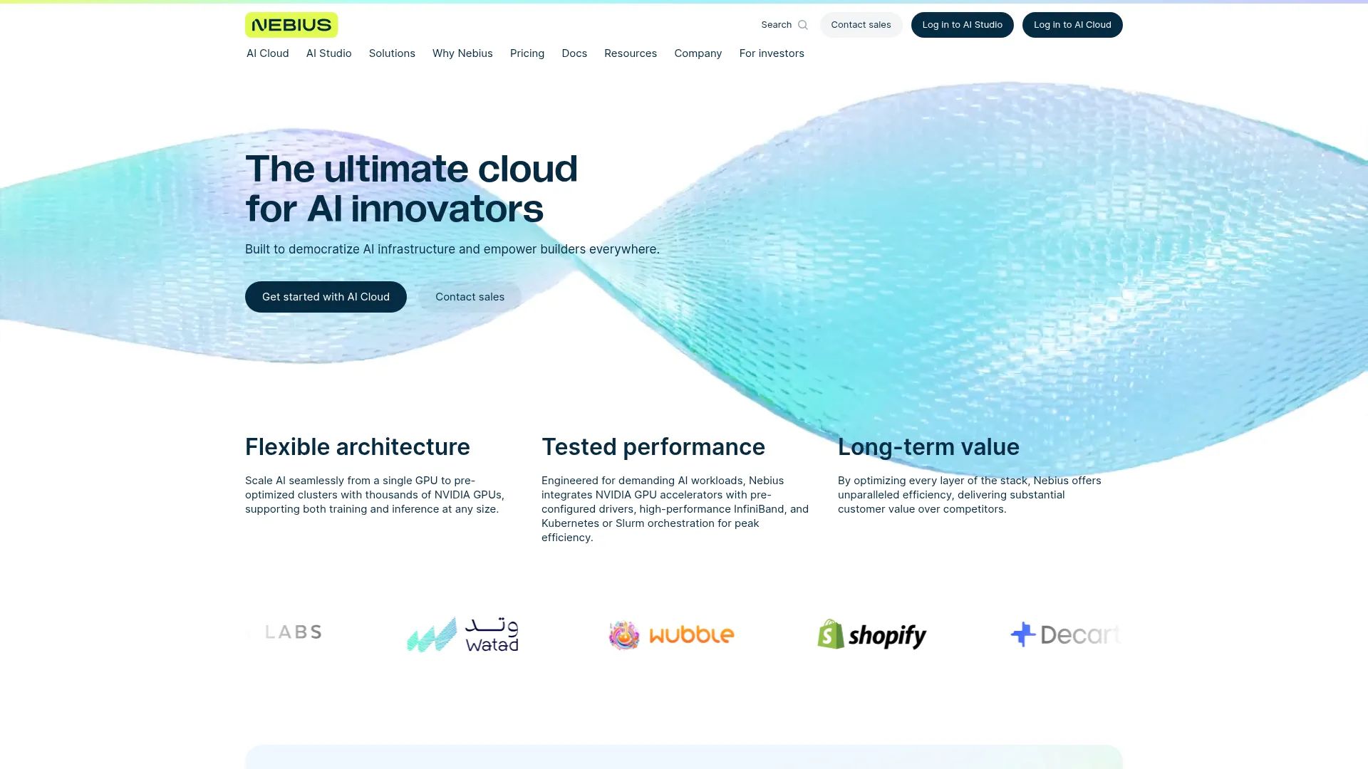 Nebius emerged from Yandex's AI team and offers a polished managed GPU platform with EU data centers for compliance needs. The platform provides end-to-end AI workflows with managed MLflow, custom Kubernetes operators, and AI Studio for model fine-tuning.