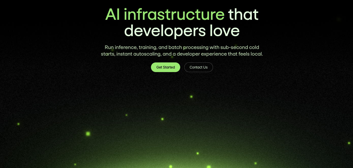 - Serverless functions with GPU support: define Python functions with resource requirements (for example, 1x NVIDIA A100 GPU and 8 CPU cores) and Modal runs them on demand, scaling up and down automatically.
