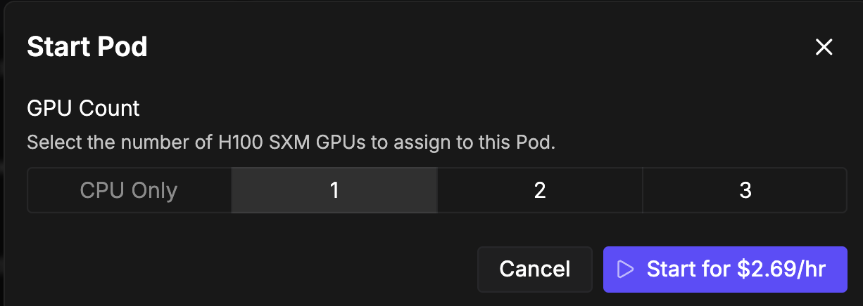 An error like this may halt your entire workflow, and may require you to tweak or lower your expectations for how much you are asking the card to do. Unfortunately, there's no quick fix for this as pods are tied to the GPU configuration you select when you create them and cannot be altered. You'll need to recreate the pod with a different GPU configuration from the list, along with porting over any configuration changes you have made since then. GPUs with more VRAM are generally not appreciably more expensive (e.g. a 3080 with 12GB of VRAM is going to be priced about the same as an A4500 with 20GB) so if you have any doubts as to whether you might need the extra RAM space, you'll probably want to err on the side of caution and select the card with more memory. Alternatively, you can also stop the pod and add additional GPUs if they are available, but be advised that not all applications support using multiple GPUs (ComfyUI not having the ability to split a model over multiple GPUs without custom nodes or configuration is a frequently cited example.)