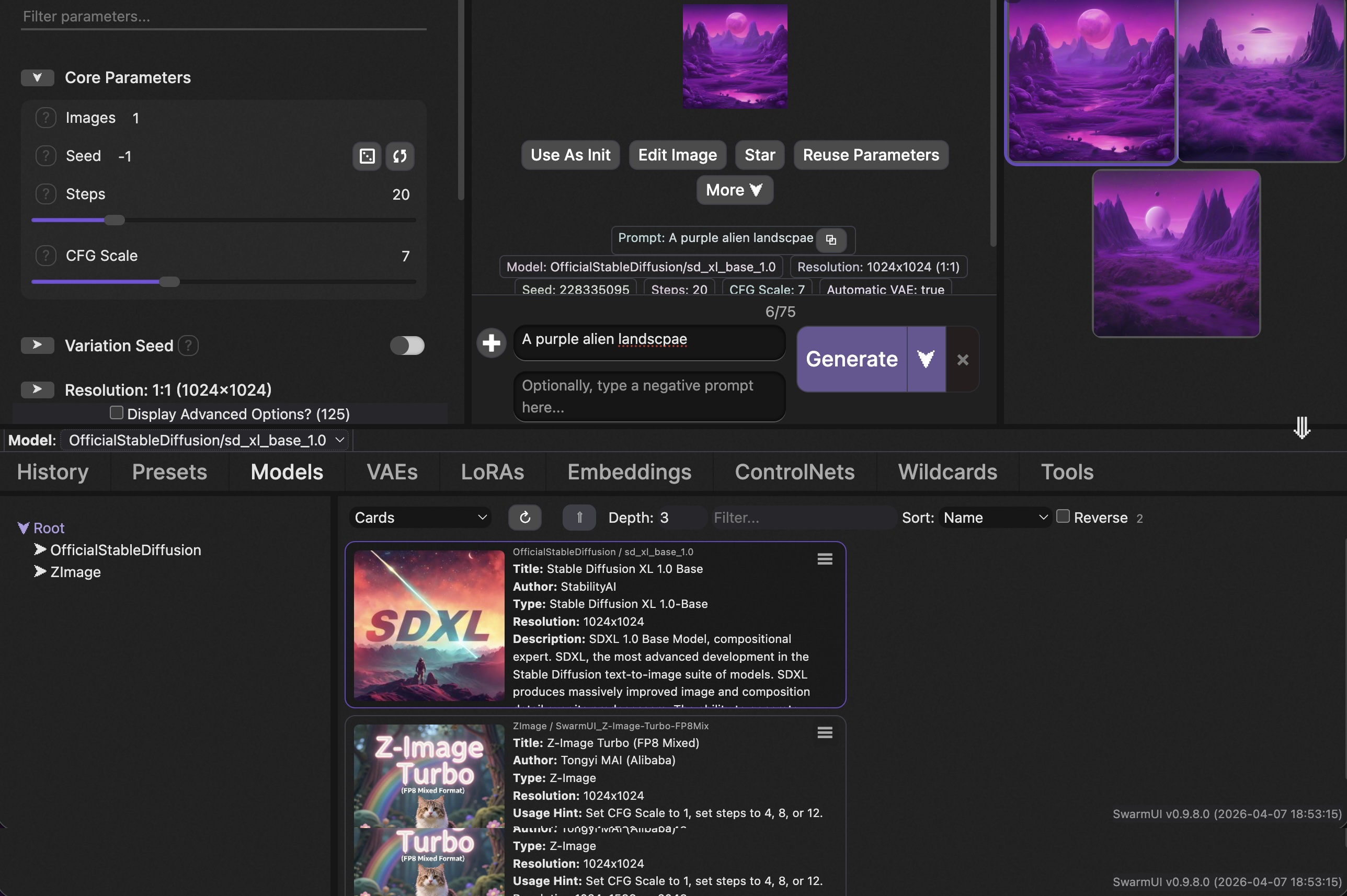 SwarmUI is a modular, open-source web interface for AI image and video generation. It supports Stable Diffusion, SDXL, Flux, Wan video models, and more, all powered by a ComfyUI backend under the hood.